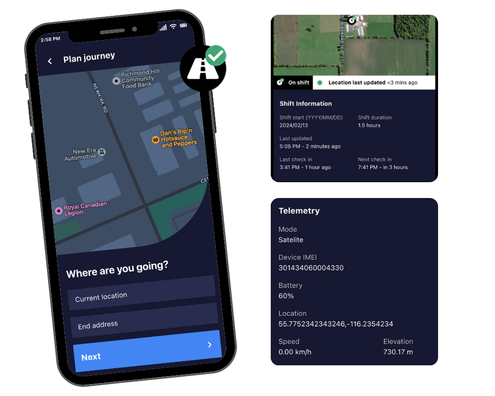 Designed to keep your lone workers secure, informed, and connected while working. We combine cutting-edge technology with human-centered care. Our features, including real-time tracking, accident detection, and location management, are backed by our dedicated contact center, ensuring that your team receives immediate, personalized assistance whenever it’s needed. Accurately track shift durations. Automated fall tracking ensures immediate response. Know the exact location of remote workers. Enables lone workers to quickly request help in emergencies. Keep your team secure with accurate, real-time location tracking, ensuring you always know where your employees are, no matter the worksite. React swiftly to any crisis with automated emergency alerts, connecting your team to help when every second counts. Stay informed with personalized notifications that fit your specific safety needs, ensuring nothing goes unnoticed. Our clients rely on us to keep their teams safe and connected, no matter the work environment. As a healthcare provider, safety is our top priority. Be Safe has streamlined our incident reporting and ensures our staff can quickly access help when needed. We highly recommend it to other organizations. The ability to track our drivers’ locations in real-time has enhanced our logistics operations. We can quickly address any issues that arise on the road, keeping our team safe and deliveries on time. Be Safe has made it so much easier to manage safety across our widespread agricultural operations. The app’s ability to function in remote areas has been crucial for us. We trust Be Safe to protect our team. Integrated with Spot, Zoleo, and Garmin, Be Safe is capable of offering full location tracking, and 2-way communication where satellite coverage is available. Enjoy flexibility with no long-term commitments. Choose Be-Safe on your terms. Pay only for what you need. No minimum usage restrictions—just reliable protection when you need it. Your safety is our priority, with round-the-clock monitoring by trusted professionals based in Canada. Protect your team with